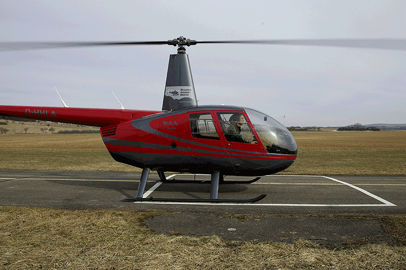 Ein weiterer Punkt beim Einführungstraining ist die, für Neulinge, etwas gewöhnungsbedürftige Sitzposition des Piloten. Dieser muss sich bei Robinson so seitlich positionieren, dass die Sitzposition den Blick, über die rechte Schulter, auf den hinteren rechten strut bestÂmögÂlich gewährleistet.